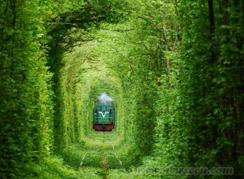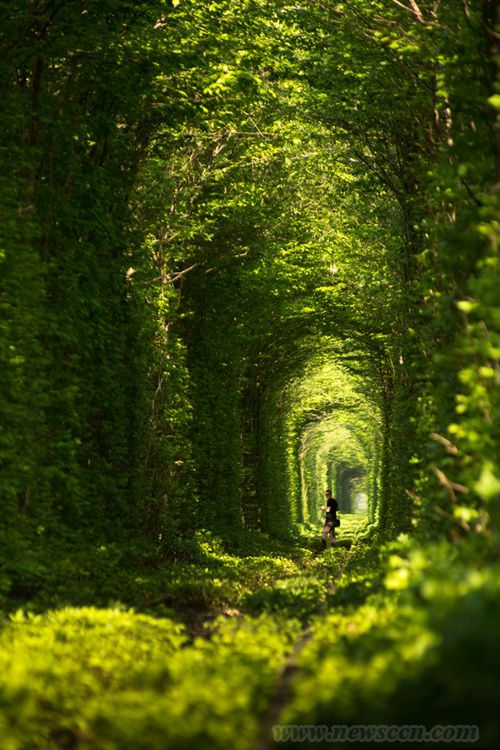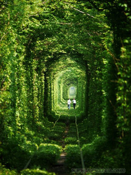 “愛的隧道”位于烏克蘭東部一個名叫克萊旺的小鎮(zhèn)附近,是一段長約3公里的鐵路。但它與眾不同的地方在于,其四周是由樹木及綠色藤蔓圍繞而成,綠色植物構(gòu)建成了拱形結(jié)構(gòu),將整條鐵路包裹起來,變成了一條綠色的通道。