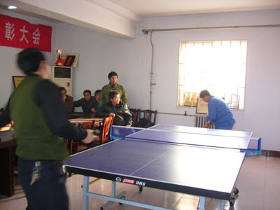 跳繩活動在我國源遠流長,不需較大場地和器材即能鍛煉身體。老將楊福學(xué)似乎又回到童年,身法矯健靈活,但畢竟后生可謂,很快被張偉麗以1分鐘118跳超出,接著,紀錄一次次被刷新,最后,李建民以146跳奪冠。飛鏢比賽扣人心眩,楚河漢界兩軍對壘,慢車賽盡顯絕活,踢毽子彩蝶飄飛。國球乒乓球比賽更是激烈,14名選手經(jīng)過4輪比賽才決出勝負。琚波等高手均想奪冠,司機班長楚樹林,3號車駕駛員郭宏濱球藝也非同一般,終因平日工作太忙,沒有時間練習(xí),第2、3輪后出局。各項比賽結(jié)束后,公司經(jīng)理李相平為各項目第一名頒發(fā)了獎品,其余人員也得到了精美的紀念品。