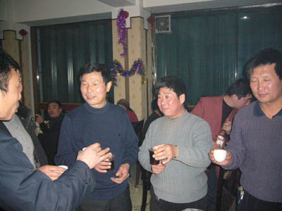 公司副經(jīng)理董建新為公司的興旺發(fā)達(dá)、員工的健康、家庭和睦而干杯的提議拉開了聯(lián)歡會的帷幕。溜光溢彩,歡聲一片。小游戲,文藝節(jié)目穿插互動(dòng)。其中投籃趣味性較強(qiáng),背藍(lán)的員工必須走動(dòng),而投藍(lán)手拿的是輕飄的氣球,難度較大;看表情猜飲料要求兩名員工一組,一個(gè)喝貌似相同的飲料,另一個(gè)從他瞬間表現(xiàn)猜喝的什么飲料,這不光需要相互間配合的默切,更需要判斷力,假如要加深對成語張冠李戴的理解,這也算得上是不錯(cuò)的課堂。