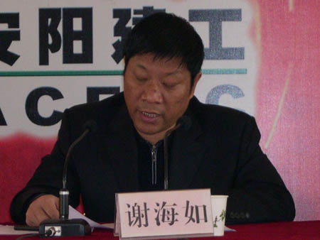 會議由公司董事、副總經(jīng)理劉艷軍同志主持。與會人員包括集團公司各位股東、股東代表、特邀職工代表。第二屆董事會候選人、第二屆監(jiān)事會候選人參加了會議。下午2:10劉艷軍同志宣布大會開始,雄壯的《中華人民共和國國歌》在會場內(nèi)響起。會議首先由董事長謝海如同志匯報本屆董事會工作情況,三年來公司的基本情況,公司的狀態(tài)及應(yīng)解決的問題,董事會存在的問題及今后董事會努力的方向,謝海如董事長的匯報既指出上一屆董事會的工作成績又指出存在的問題和不足,對公司的未來發(fā)展提出了較為務(wù)實的設(shè)想。