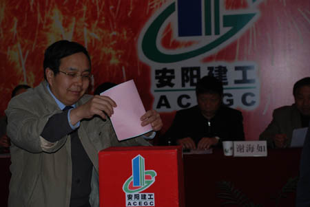 為順應(yīng)體制改革需要,進一步規(guī)范企業(yè)法人治理機構(gòu),2008年3月19日下午,公司在四樓會議室召開了2008年安陽建工集團第一次股東會、第二屆一次股東代表大會,第二屆一次董事會,第二屆一次監(jiān)事會,會議選舉產(chǎn)生了新一屆董事會、監(jiān)事會成員,順利完成了公司董事會、監(jiān)事會換屆工作,會議取得圓滿成功,謝海如同志再次當選為集團公司董事長。