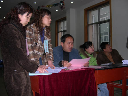 股東分組對兩個報告進行了熱烈討論,董事長謝海如代表董事會對股東提出的問題進行了詳細解答。股東表決通過了兩個工作報告,按程序?qū)徸h通過了《關(guān)于修改公司章程的議案》、《關(guān)于公司董事會換屆選舉的議案》、《關(guān)于公司監(jiān)事?lián)Q屆選舉的議案》,宣讀并通過董事、監(jiān)事選舉辦法,唱票人、計票人、監(jiān)票人名單。大會表決通過了2008年第一次股東會決議。