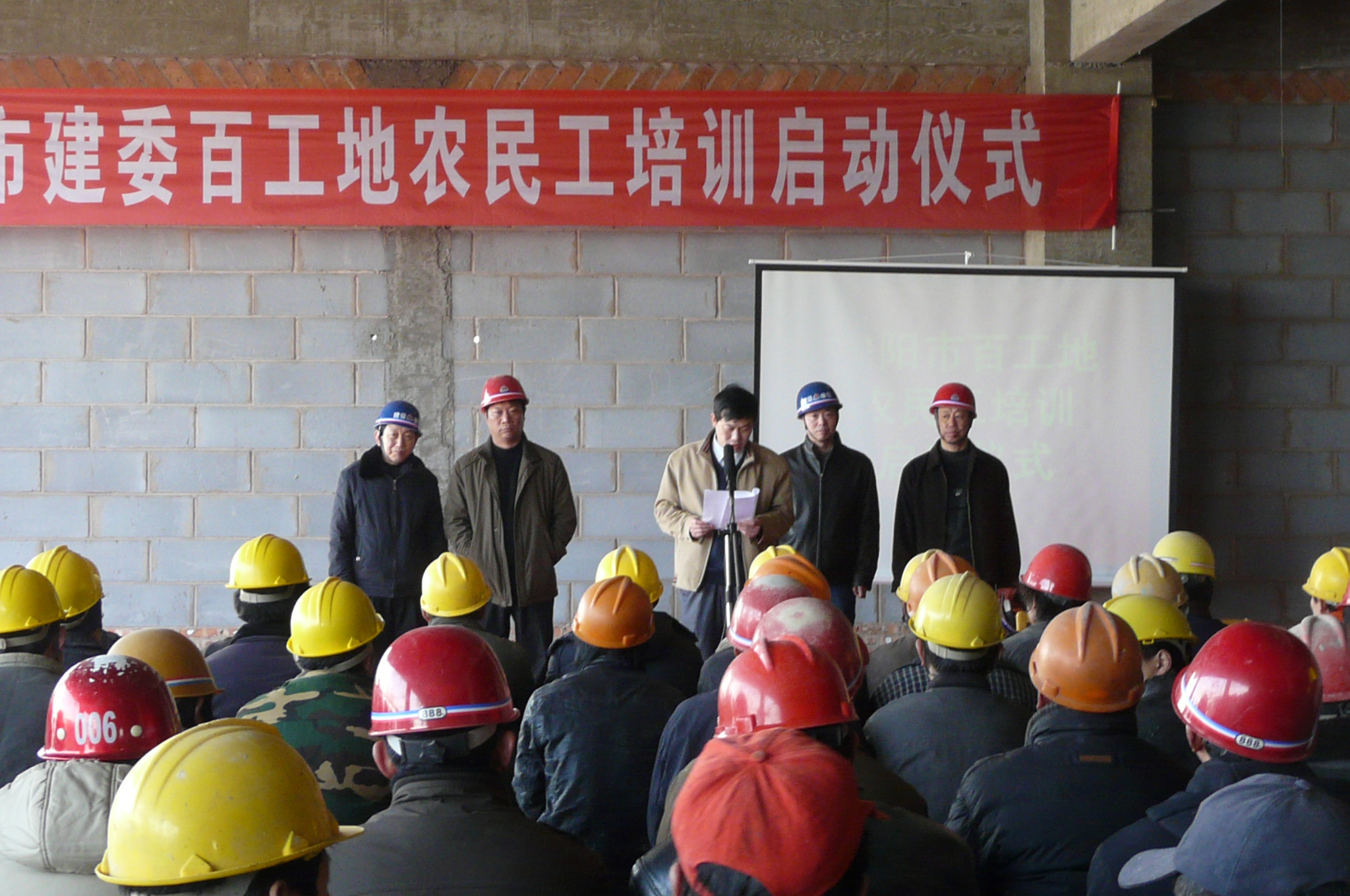2月20日上午,由安陽市建委組織開展的“百村百工地”建筑業(yè)農(nóng)民工培訓活動啟動儀式在我公司農(nóng)業(yè)大廈工地農(nóng)民工培訓學校舉行,市建委主任侯津琪、總工劉恒磊同志出席啟動儀式。自公司農(nóng)民工培訓學校開辦以來,圍繞建筑市場要求,對以農(nóng)民工為主的勞務作業(yè)人員開展定向培訓,提高建筑農(nóng)民工業(yè)務技能和從業(yè)素質(zhì),為公司工程創(chuàng)優(yōu)奠定了基礎(chǔ)。公司將以此次活動為契機,配合市建設(shè)主管部門,對農(nóng)民工開展建筑行業(yè)11工種的業(yè)務技能培訓,既使農(nóng)民工學到有用的技能,又提高公司安全生產(chǎn)和質(zhì)量水平,為公司建設(shè)品牌工程輸送人才。