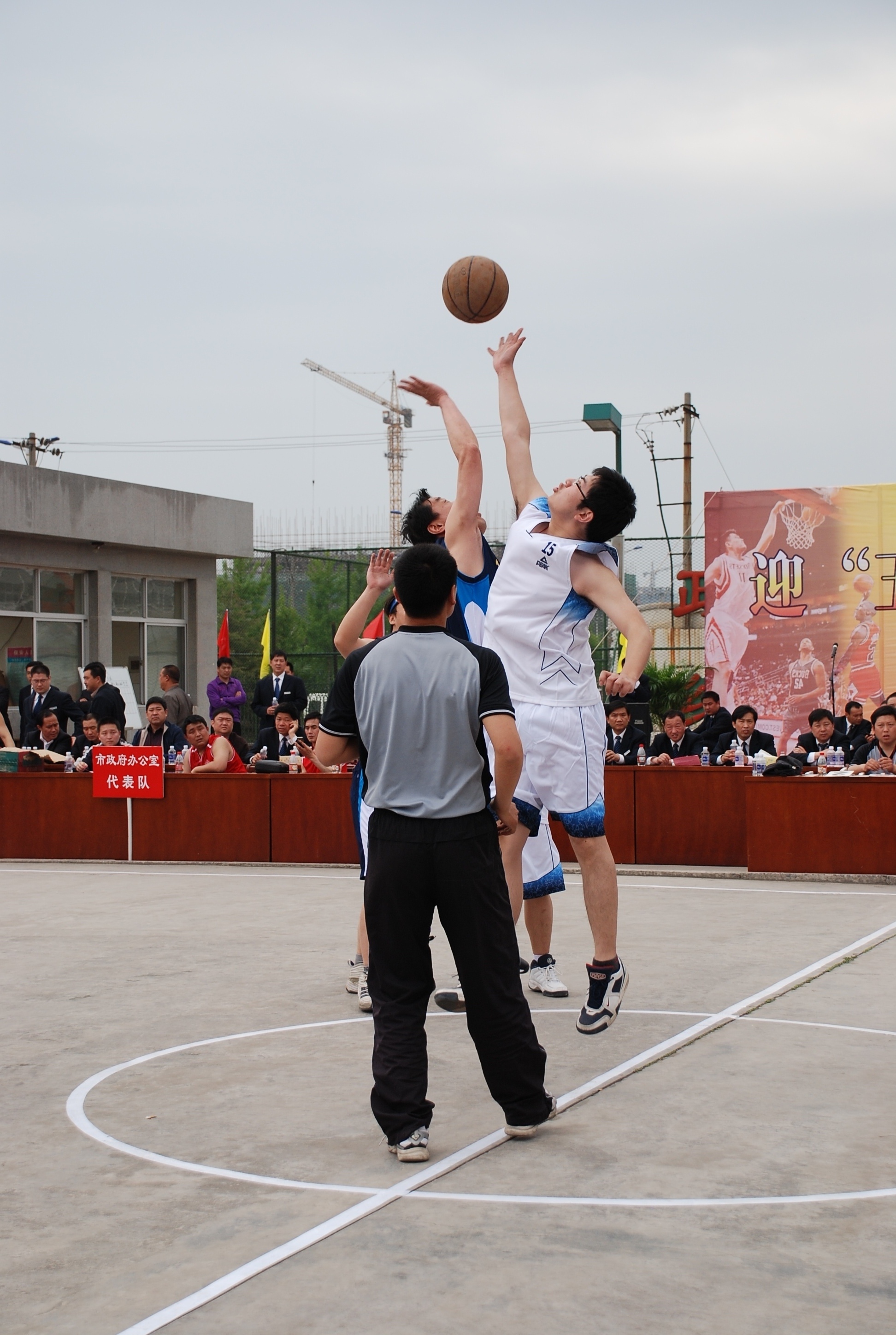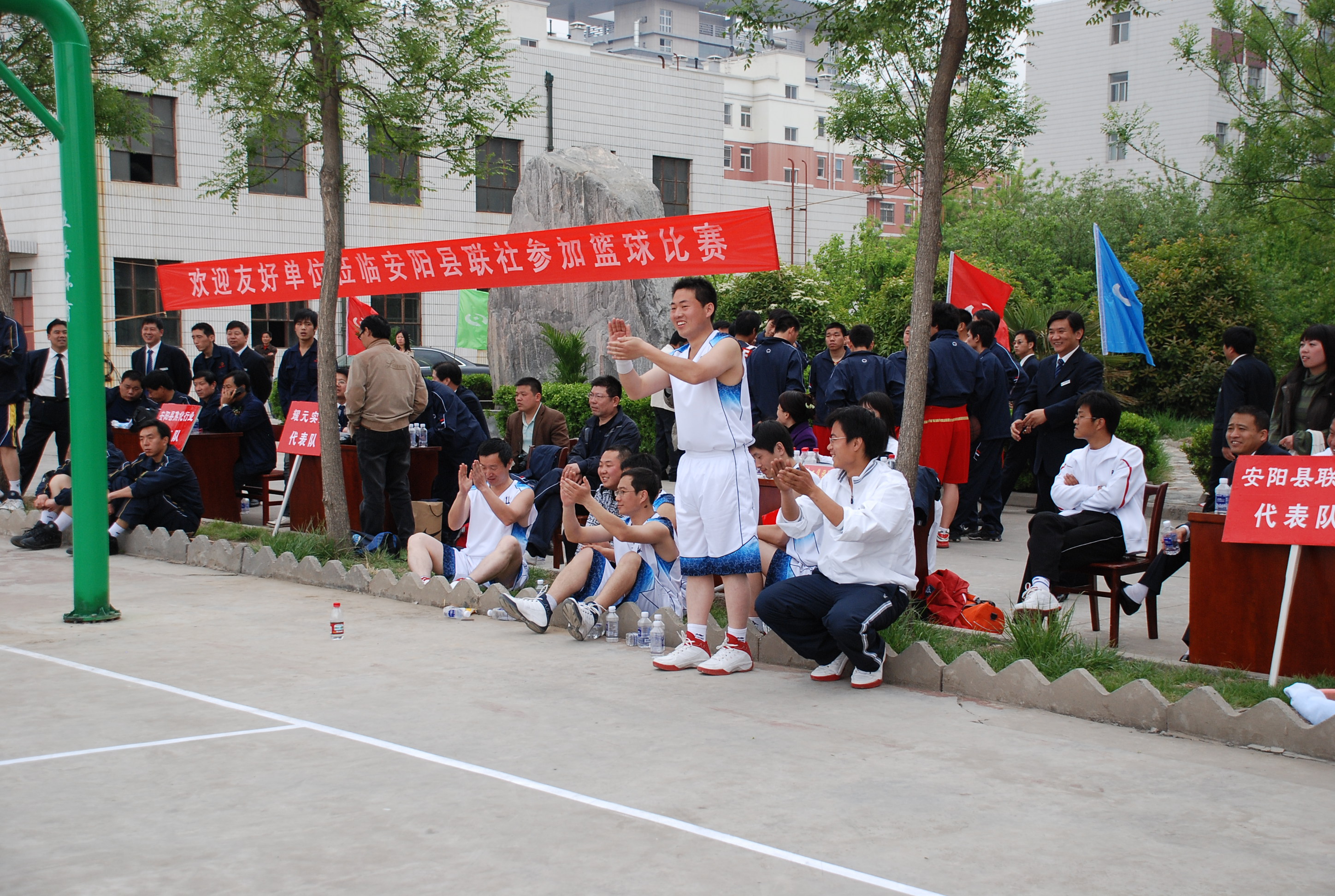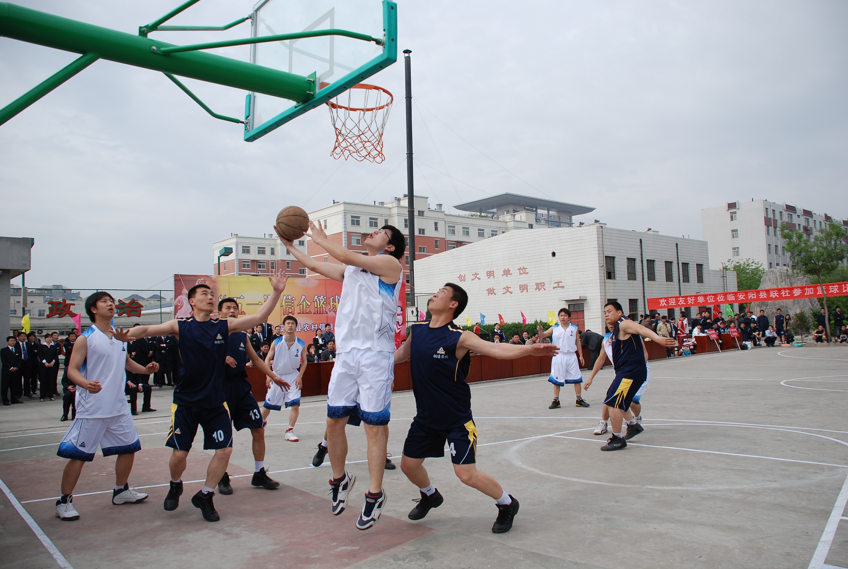 公司謝總(右二)出席籃球賽開幕式 工會馬主席帶隊參加比賽 安陽建工 15:5 勝銅冶隊 爭奪籃板球 安陽建工 15:4 勝市檢察院隊 進球了!
