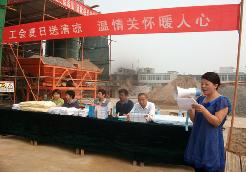 盛夏來(lái)臨,持續(xù)的高溫天氣,對(duì)于戶外作業(yè)的工程建設(shè)者來(lái)說(shuō)是對(duì)體力和毅力的挑戰(zhàn)。為抓好今年各施工單位盛夏季節(jié)的勞動(dòng)保護(hù)、防暑降溫工作,切實(shí)保障職工在勞動(dòng)生產(chǎn)中安全與健康,安陽(yáng)市總工會(huì)開(kāi)展了夏日送清涼、送安全、送真情活動(dòng)。