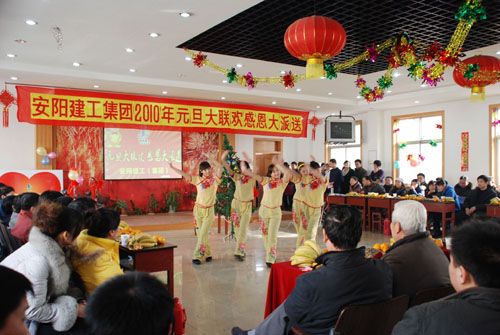 迎著新年的曙光,帶著真誠的祝福,2009年12月30日下午,公司四樓會議室花團(tuán)錦簇,彩球高掛,一派喜慶氣氛,來自機(jī)關(guān)、項目部以及各分公司的120余人聚集一堂,載歌載舞歡慶元旦。公司領(lǐng)導(dǎo)謝海如、馬松林、郝志峰、劉艷軍、王蘭蘭、鐘新安、王金玲、盧麗娜等出席了聯(lián)歡會。