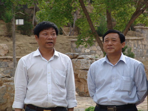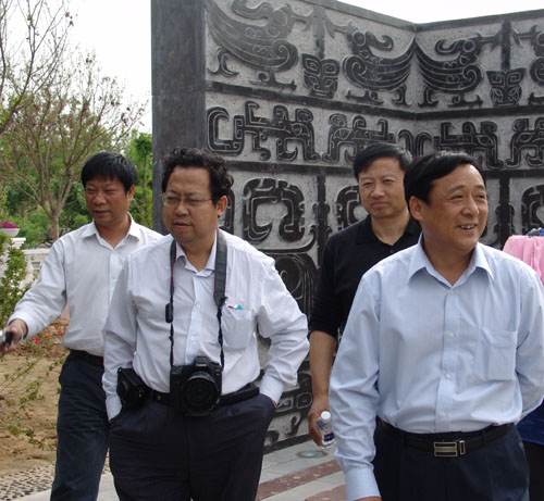 市領(lǐng)導(dǎo)于自強與市政府副秘書長李俊嶺指導(dǎo)參觀安陽園 |
